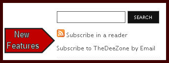 Thanks to a couple of features I added this week subscribing to The Dee Zone has gotten even easier. To subscribe just click either subscribe in a reader or subscribe by email. You can find this handy little feature in the top right hand corner under the search box (See image below)